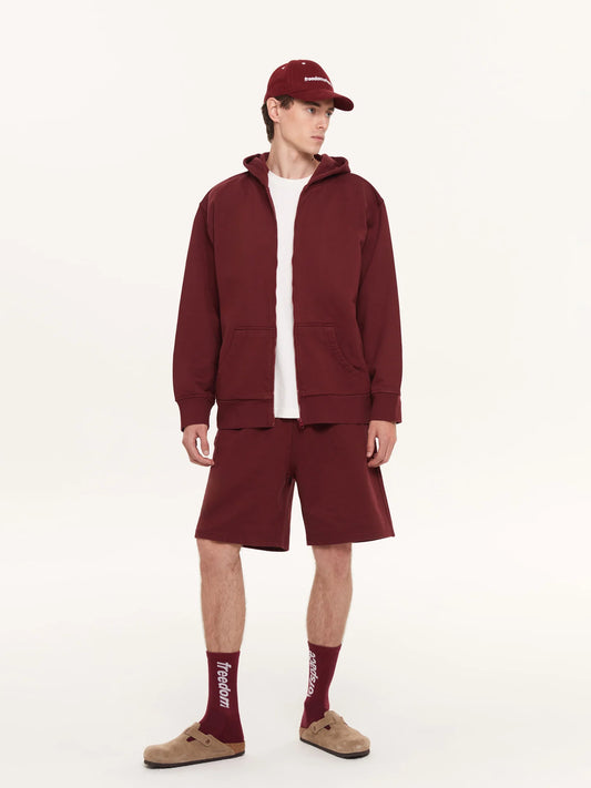 A SIMPLE FULL ZIP HOODIE BORDEAUX - FRONT OF