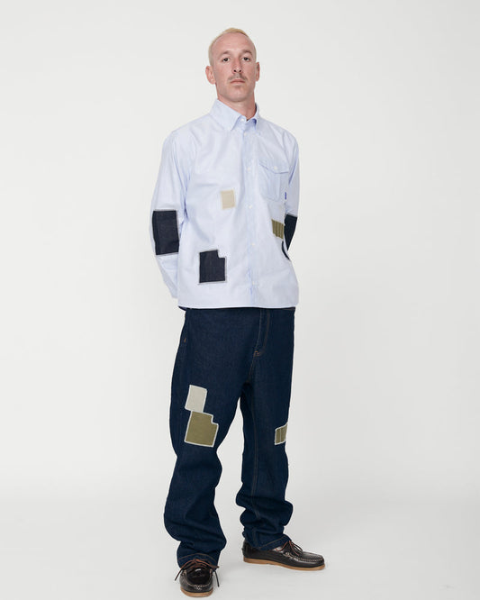 CAMISA SASHIKO WANF PATCH BLUE - FRONT OF