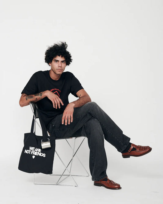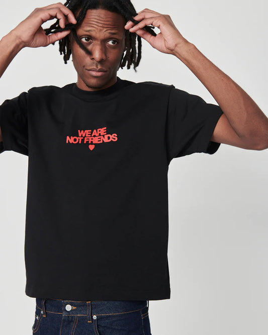 BLACK WE ARE NOT FRIENDS BOLD LOVE T-SHIRT - FRONT OF