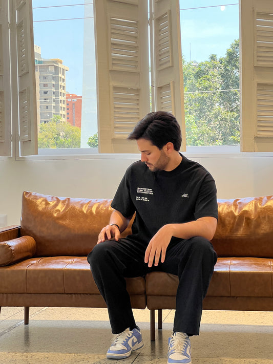 TEXTURED BOXY TEE BLACK - FRONT OF