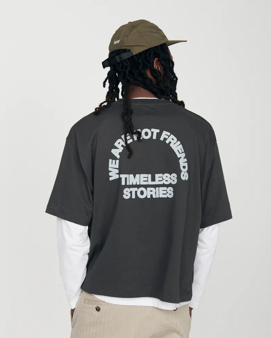 STORIES BOXY T-SHIRT VINTAGE CHARCOAL BLACK - FRONT OF