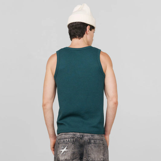 TEXTURED SLEEVELESS T-SHIRT PINE GREEN - FRONT OF