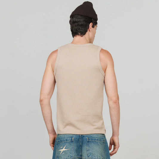 TEXTURED SLEEVELESS T-SHIRT SAND - FRONT OF