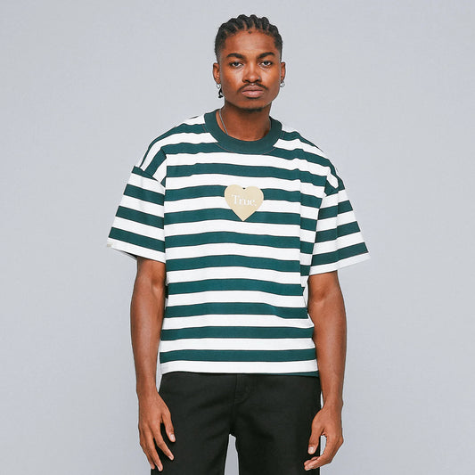 STRIPED BOXY T-SHIRT PINE GREEN - FRONT OF.