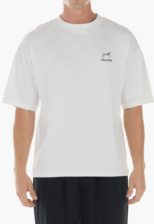 The Charles t-shirt from NANA JUDY is a classic crew neck style featuring the brands iconic Dalmatian dog logo on the front chest. This enzyme washed black t-shirt offers a unique and stylish addition to any wardrobe. With its clean design and high-quality fabric, it is a must-have for the season.