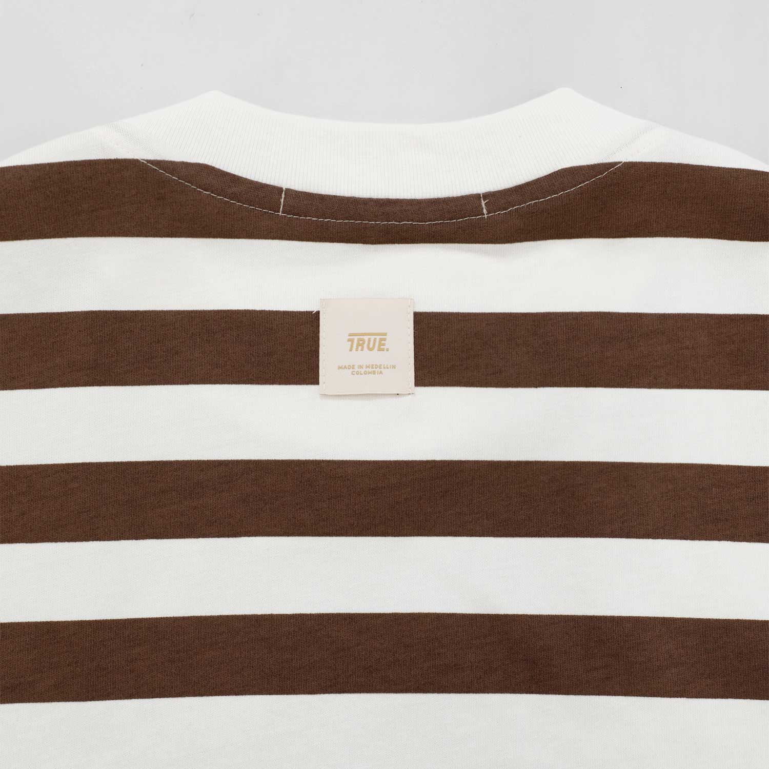 Hecha en 100% algodón, esta camiseta viene con un diseño a rayas y silueta Box Fit. El cuello está hecho en rib, tiene el logo de la colección estampado en alta densidad adelante, trae una marquilla exterior atrás y un banderín en una de las mangas.